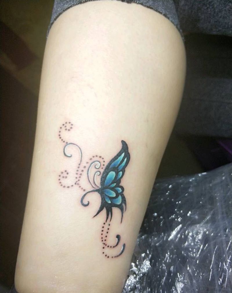 当前位置: 首页 >福建省莆田市纹身店-莆田纹艺刺青纹身图案>本店作品小腿蝴蝶纹身图片_腿部清新动物成品纹身图案