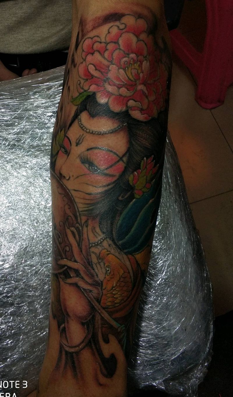 当前位置: 首页 >福建省莆田市纹身店-莆田纹艺刺青纹身图案>艺妓包小妓纹身图片_手臂传统人物成品纹身图案