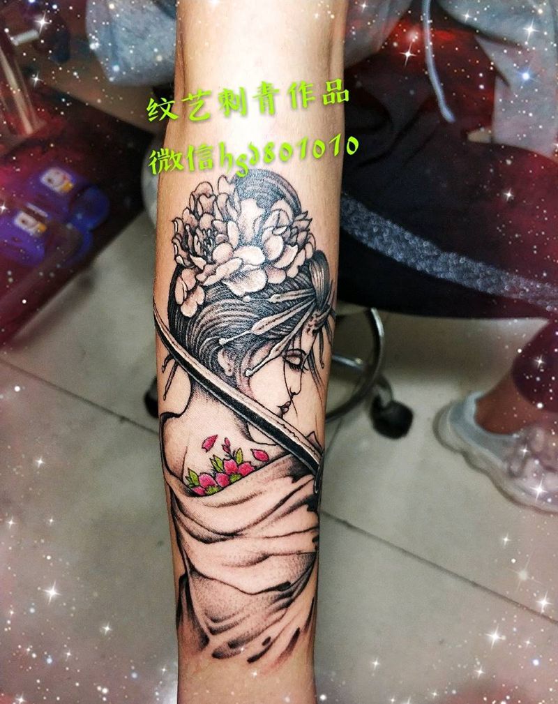当前位置: 首页 >福建省莆田市纹身店-莆田纹艺刺青纹身图案>艺妓纹身图片_手臂新传统纹身图案