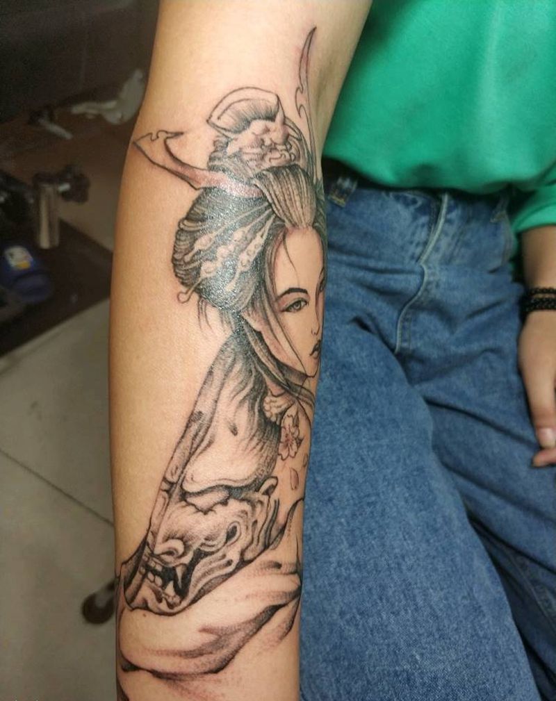 当前位置: 首页 >福建省莆田市纹身店-莆田纹艺刺青纹身图案>艺妓作品纹身图片_手臂新传统纹身图案