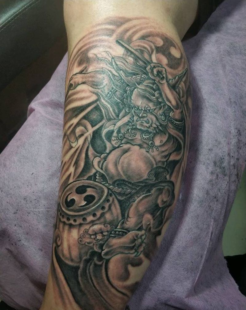 雷神修改作品纹身图片_腿部新传统纹身图案