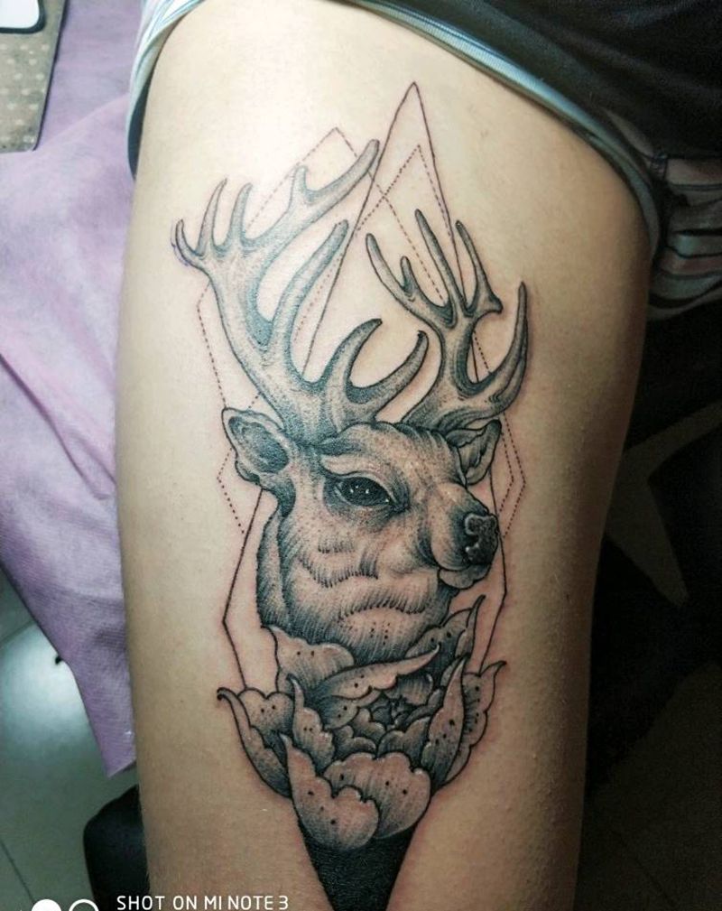 当前位置: 首页 >福建省莆田市纹身店-莆田纹艺刺青纹身图案>鹿头纹身图片_腿部点刺纹身图案