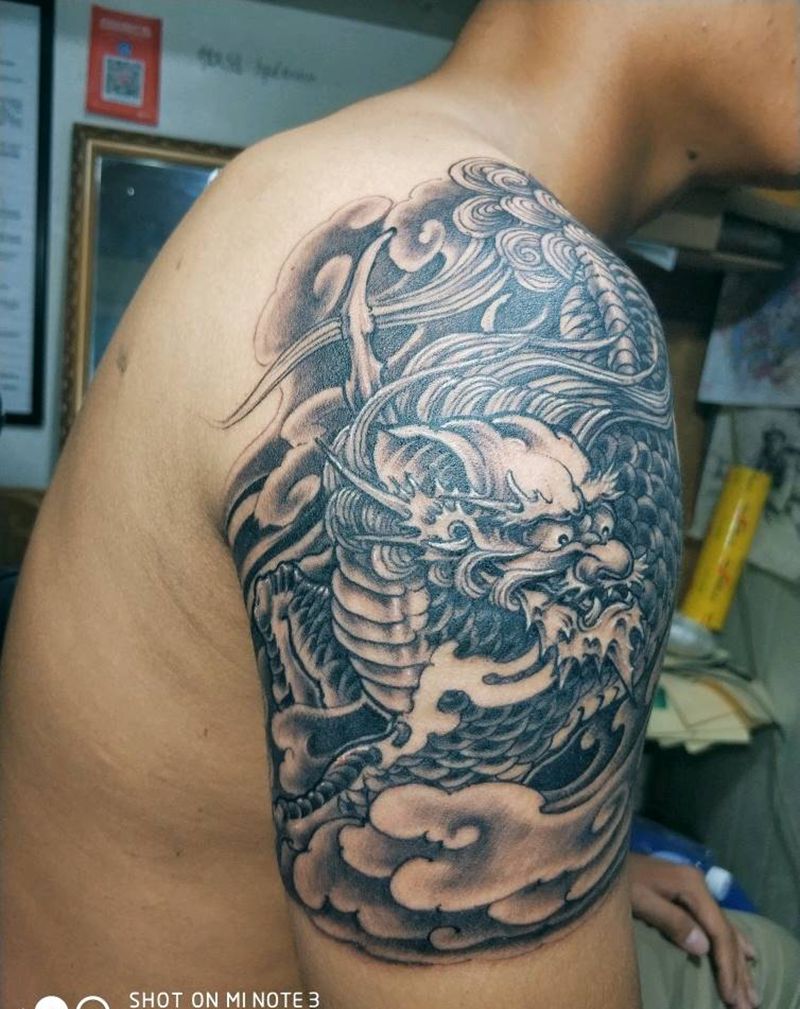 • T云龙九郎纹身图片_背部老传统云龙九郎纹身图案