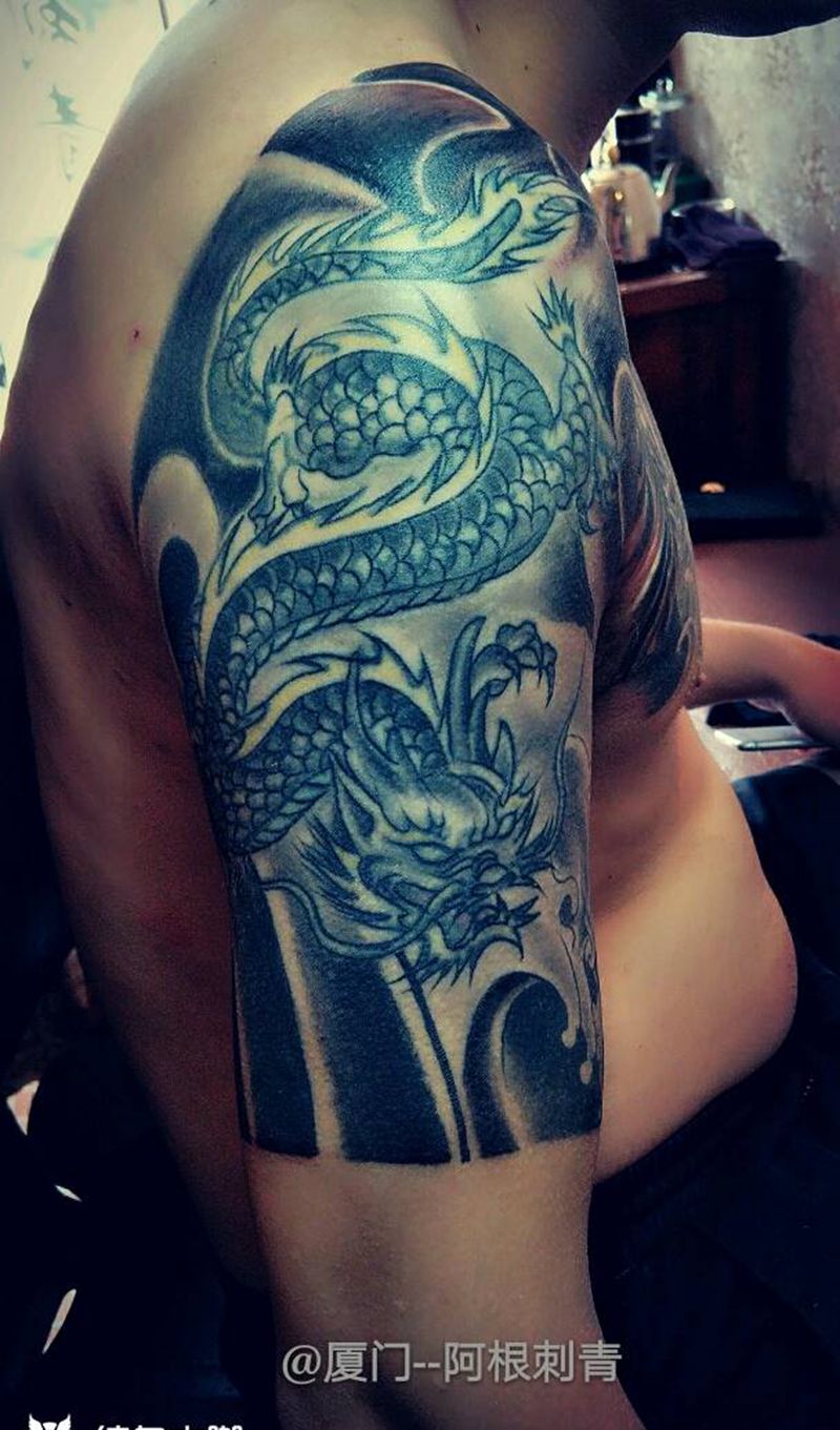 早期龙增加半甲纹身图片
