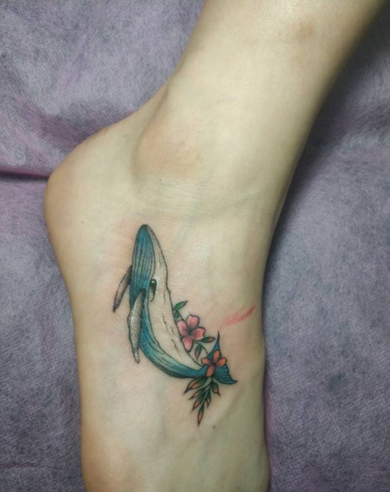 鲸鱼纹身图片_脚部水彩纹身图案