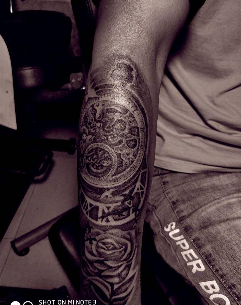 当前位置: 首页 >福建省莆田市纹身店-莆田纹艺刺青纹身图案>机械表和花纹身图片_手臂欧美写实纹身图案