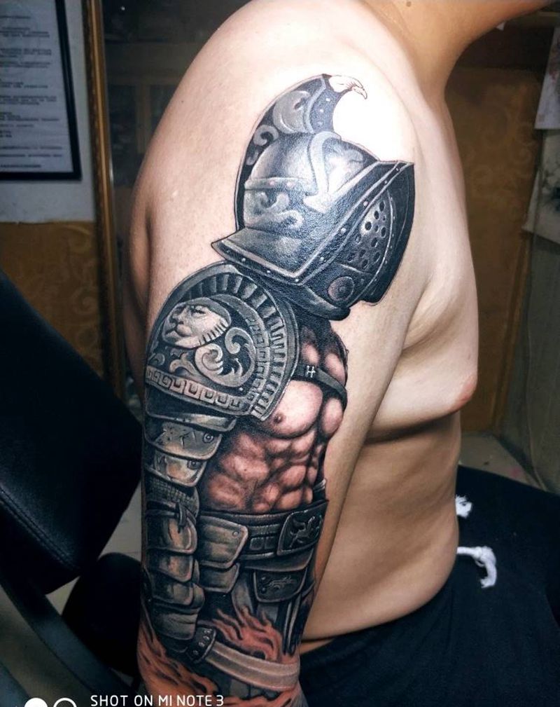 当前位置: 首页 >福建省莆田市纹身店-莆田纹艺刺青纹身图案>写实角斗士纹身图片_手臂欧美写实纹身图案