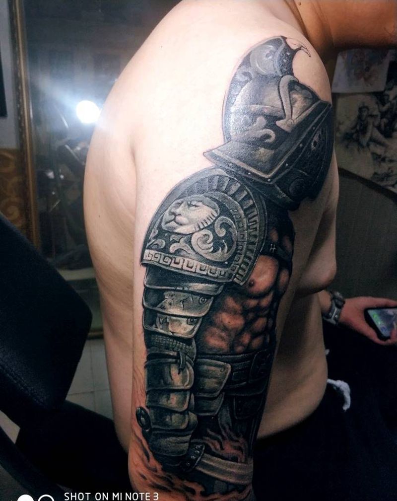 当前位置: 首页 >福建省莆田市纹身店-莆田纹艺刺青纹身图案>写实角斗士纹身图片_手臂欧美写实纹身图案