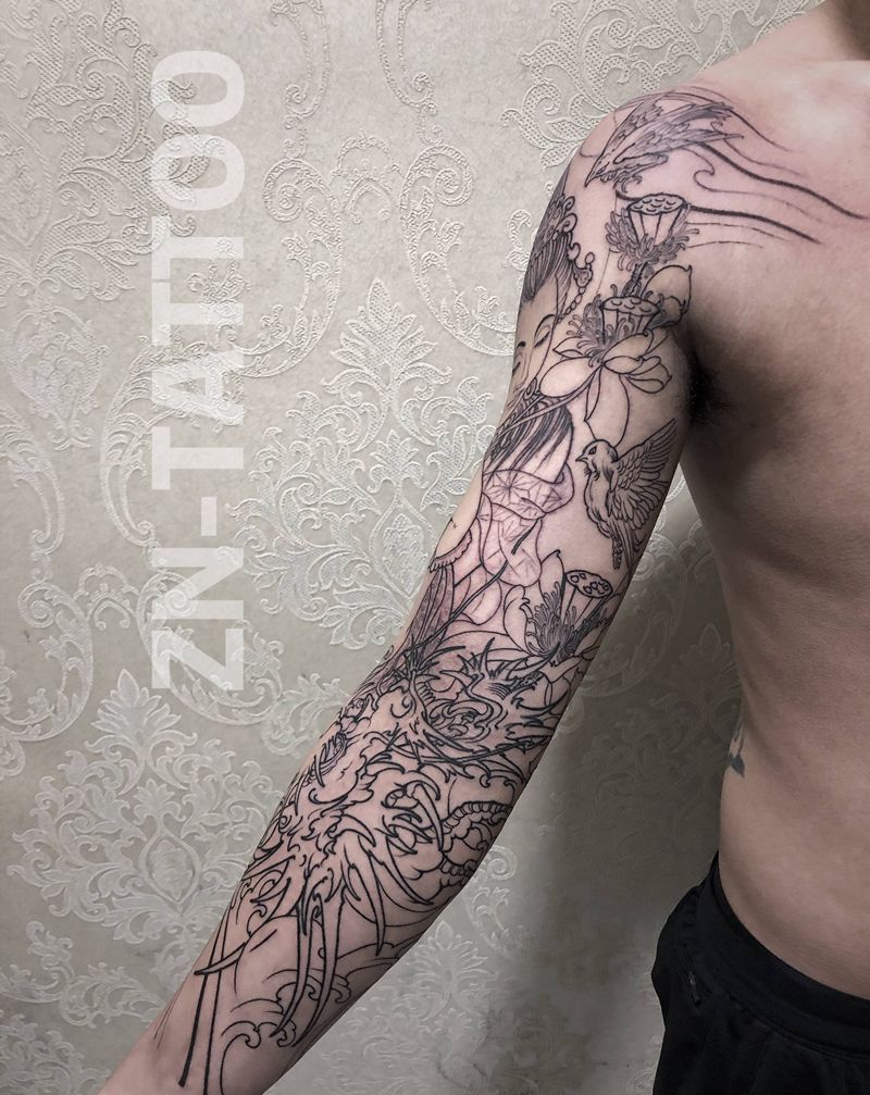 当前位置: 首页 >福建省三明市纹身店-执念刺青社纹身图案>新传统观音未完纹身图片_手臂新传统纹身图案