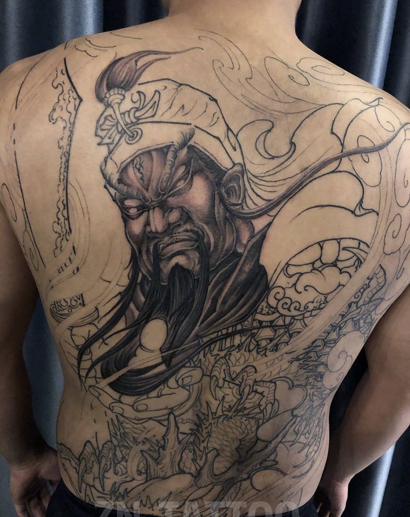 关羽第一次纹身图片_背部新传统纹身图案
