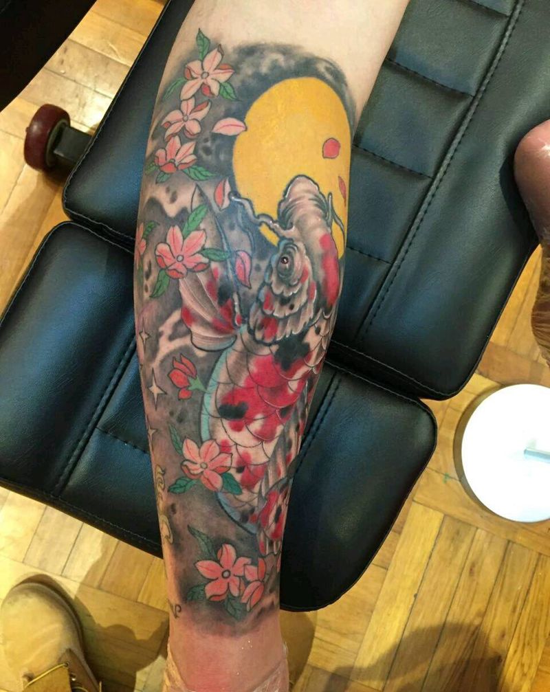 当前位置: 首页 >福建省泉州市纹身店-诚毅刺青纹身图案>原创富贵锦鲤纹身图片_手臂腿部传统习俗清新写实动物植物原创成品纹身图案
