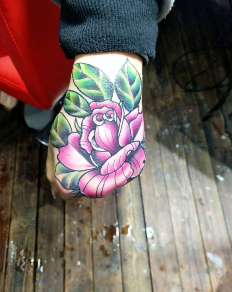 • 手背潮流时尚的玫瑰花眼睛纹身图案