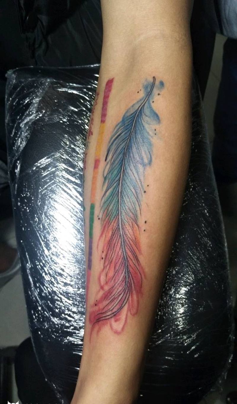 羽毛 泼墨风纹身图片_手臂手部清新成品插画纹身图案