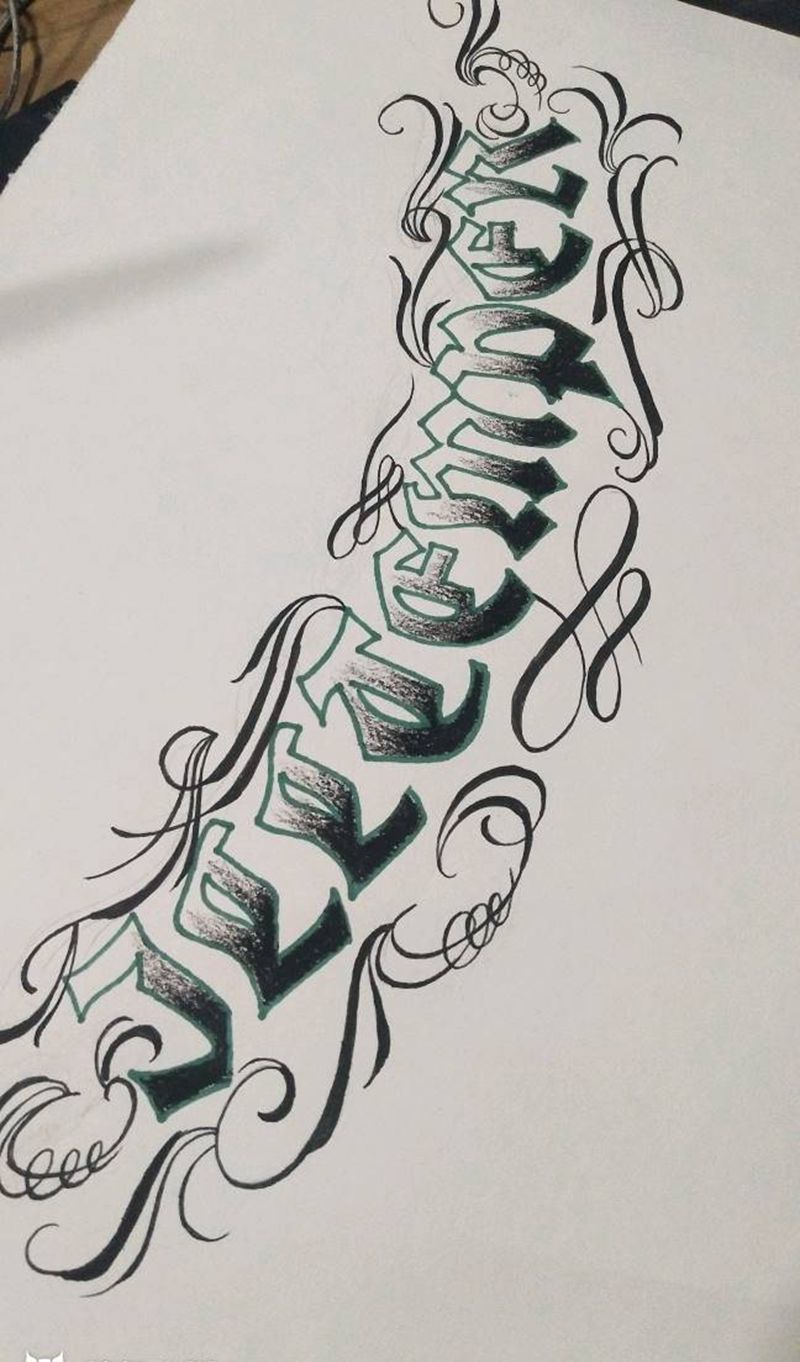 私人订制 手稿纹身图片_胸部欧美字符原创手稿纹身图案