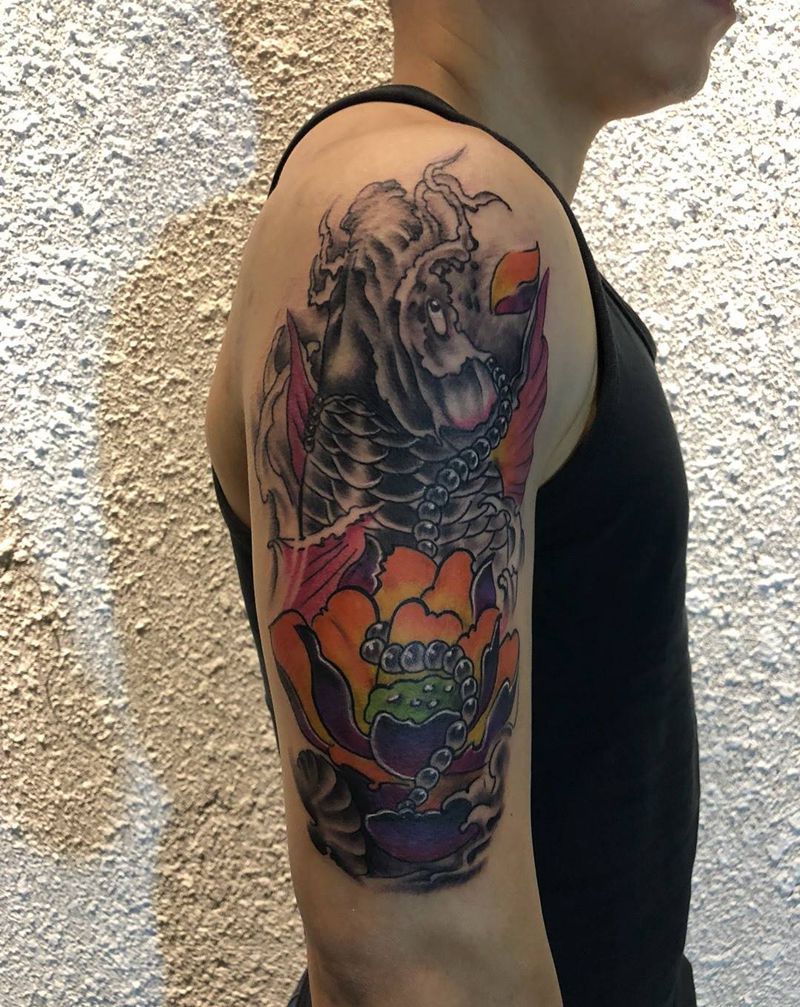鲤鱼转运纹身图片_国画传统成品手臂手部原创动物植物纹身图案