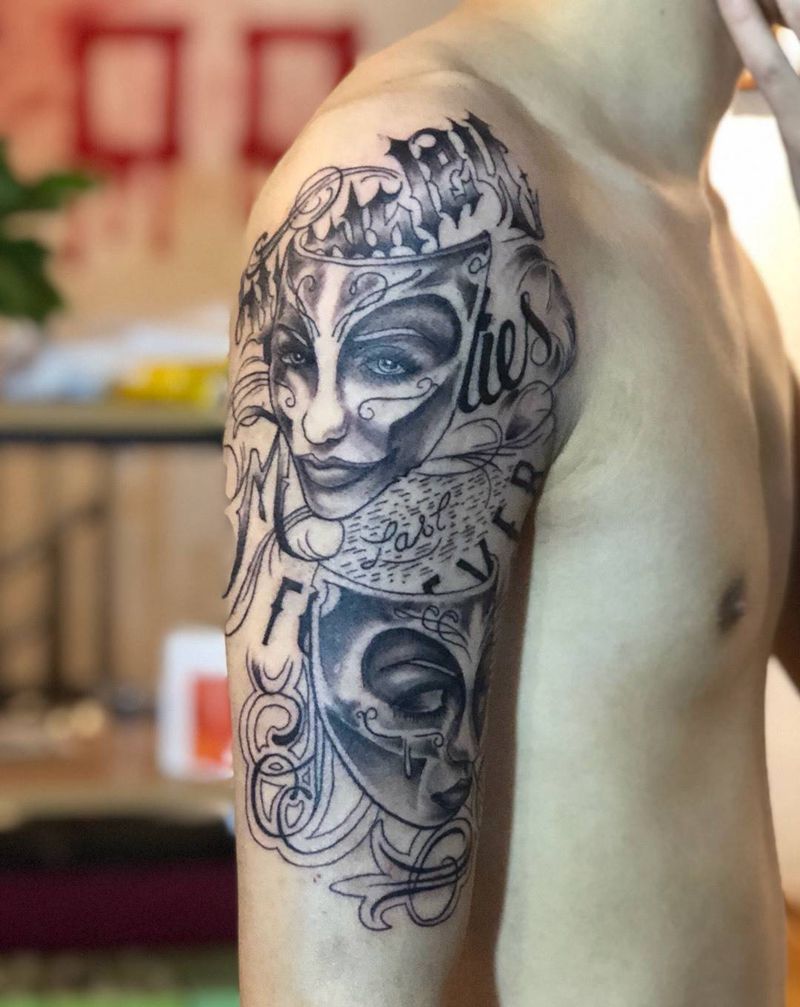 • 纹身吧推荐的披肩图腾半胛纹身图案作品展示