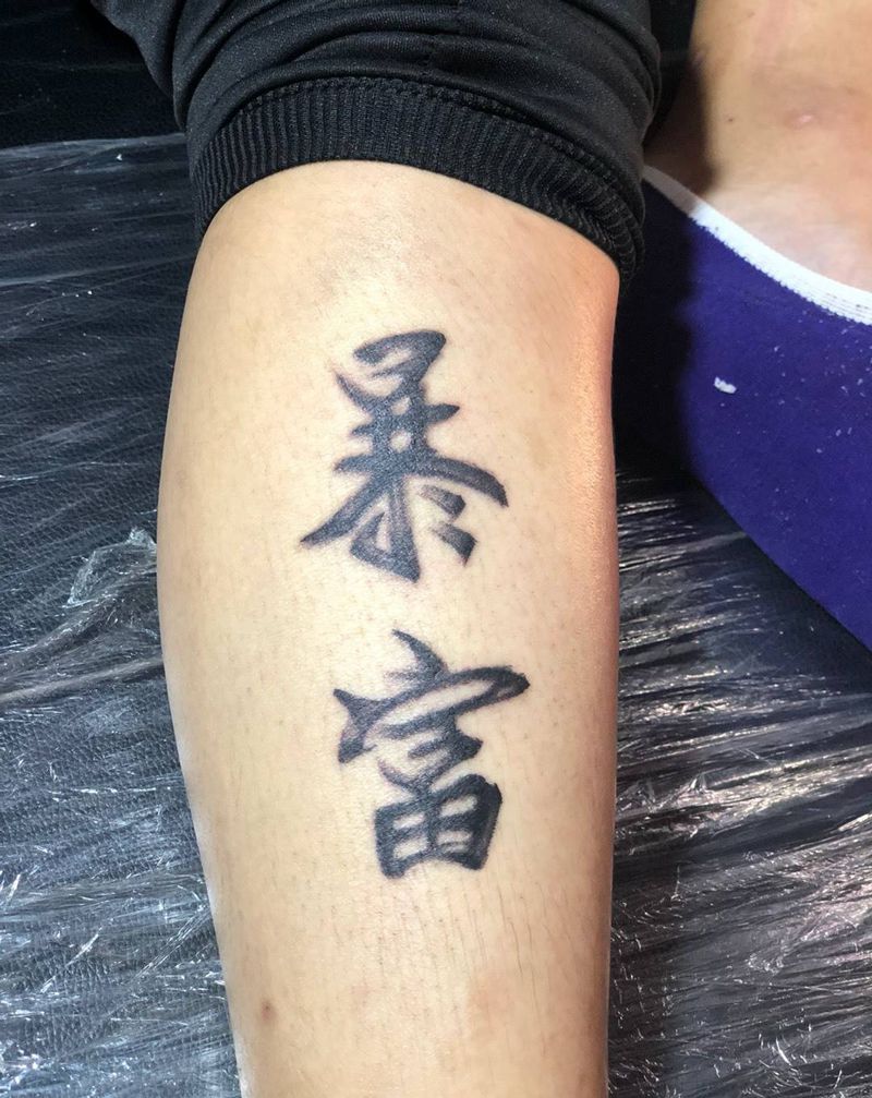 当前位置: 首页 >福建省泉州市纹身店-纯针刺青纹身图案>暴富纹身图片_手部腿部水墨纹身图案