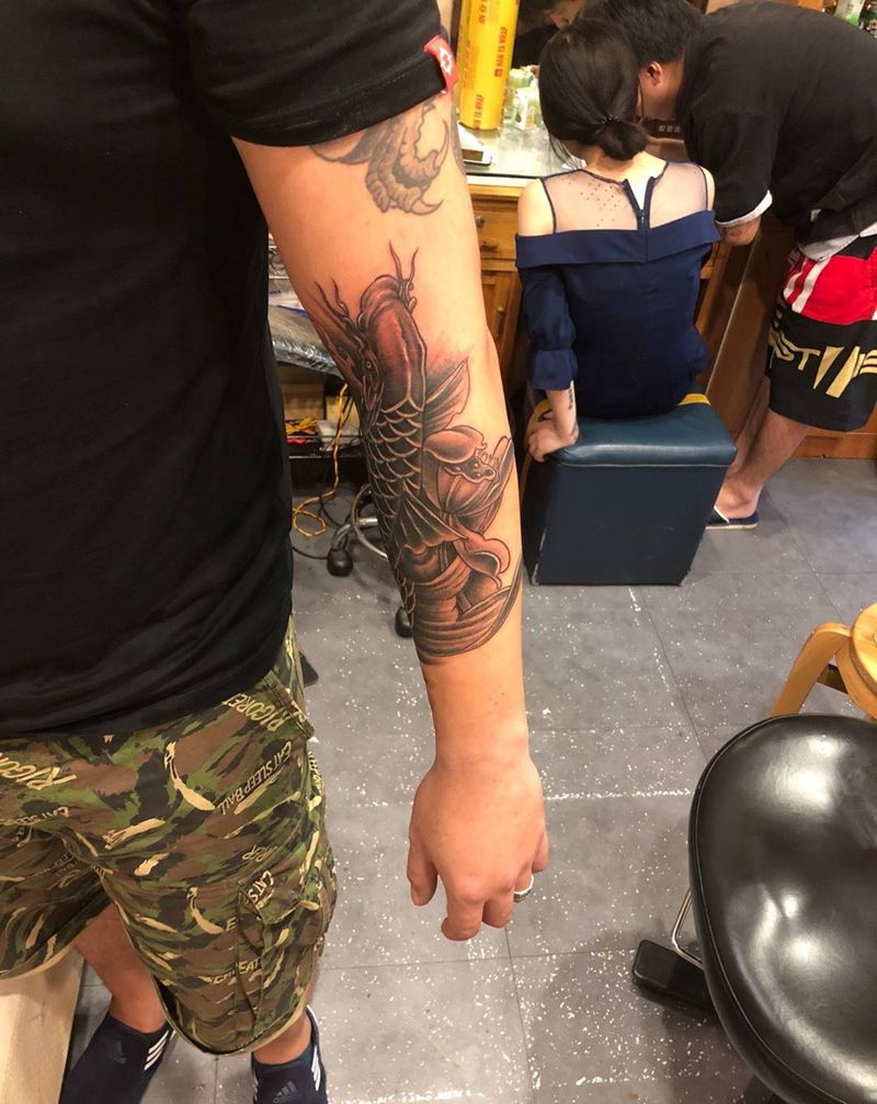 当前位置: 首页 >福建省泉州市纹身店-般若纹身纹身图案>鲤鱼遮盖旧图纹身图片