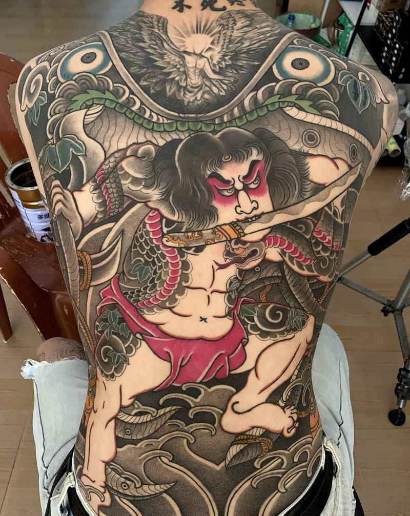 • T云龙九郎纹身图片_背部老传统云龙九郎纹身图案