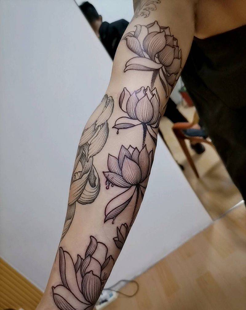 一组15张莲花纹身手