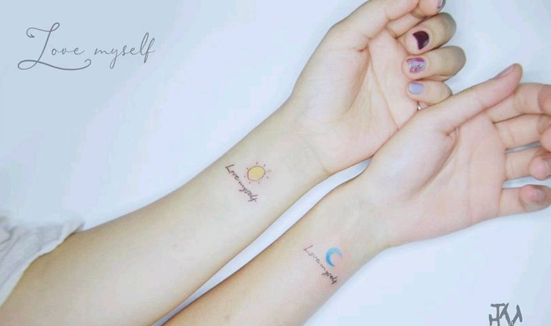 Love myself纹身图片_手部花体字纹身图案