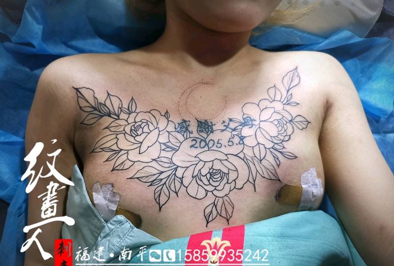 素花(遮盖)纹身图片_胸部点刺纹身图案