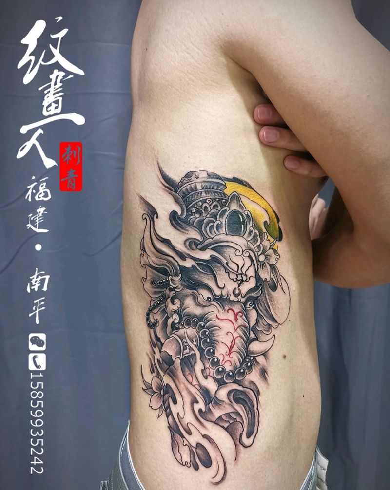 当前位置: 首页 >福建省南平市纹身店-南平纹画人刺青纹身图案>象神纹身图片_腰部新传统纹身图案