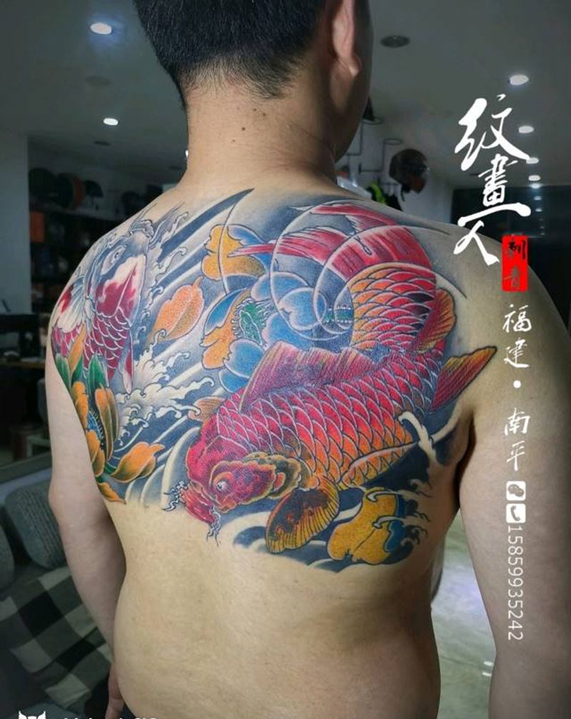 当前位置: 首页 >福建省南平市纹身店-南平纹画人刺青纹身图案>鲤鱼纹身图片_背部新传统纹身图案