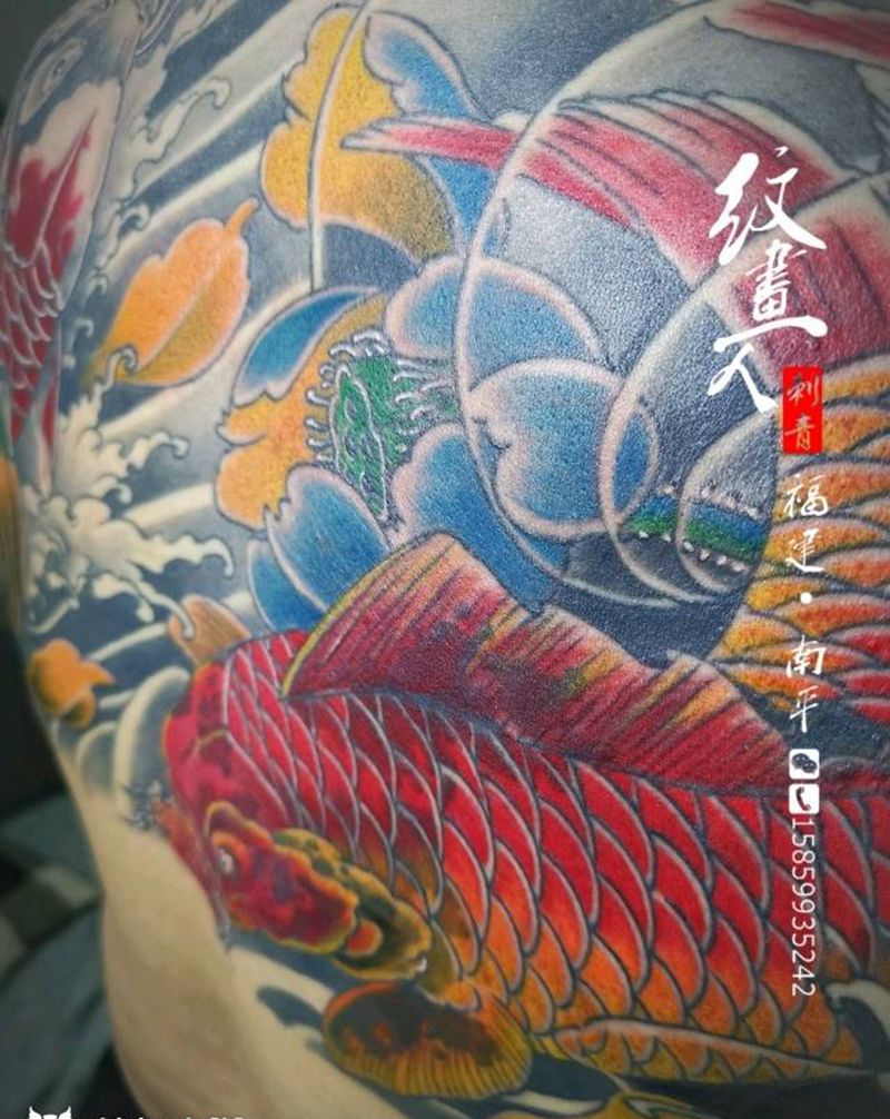 当前位置: 首页 >福建省南平市纹身店-南平纹画人刺青纹身图案>鲤鱼纹身图片_背部新传统纹身图案