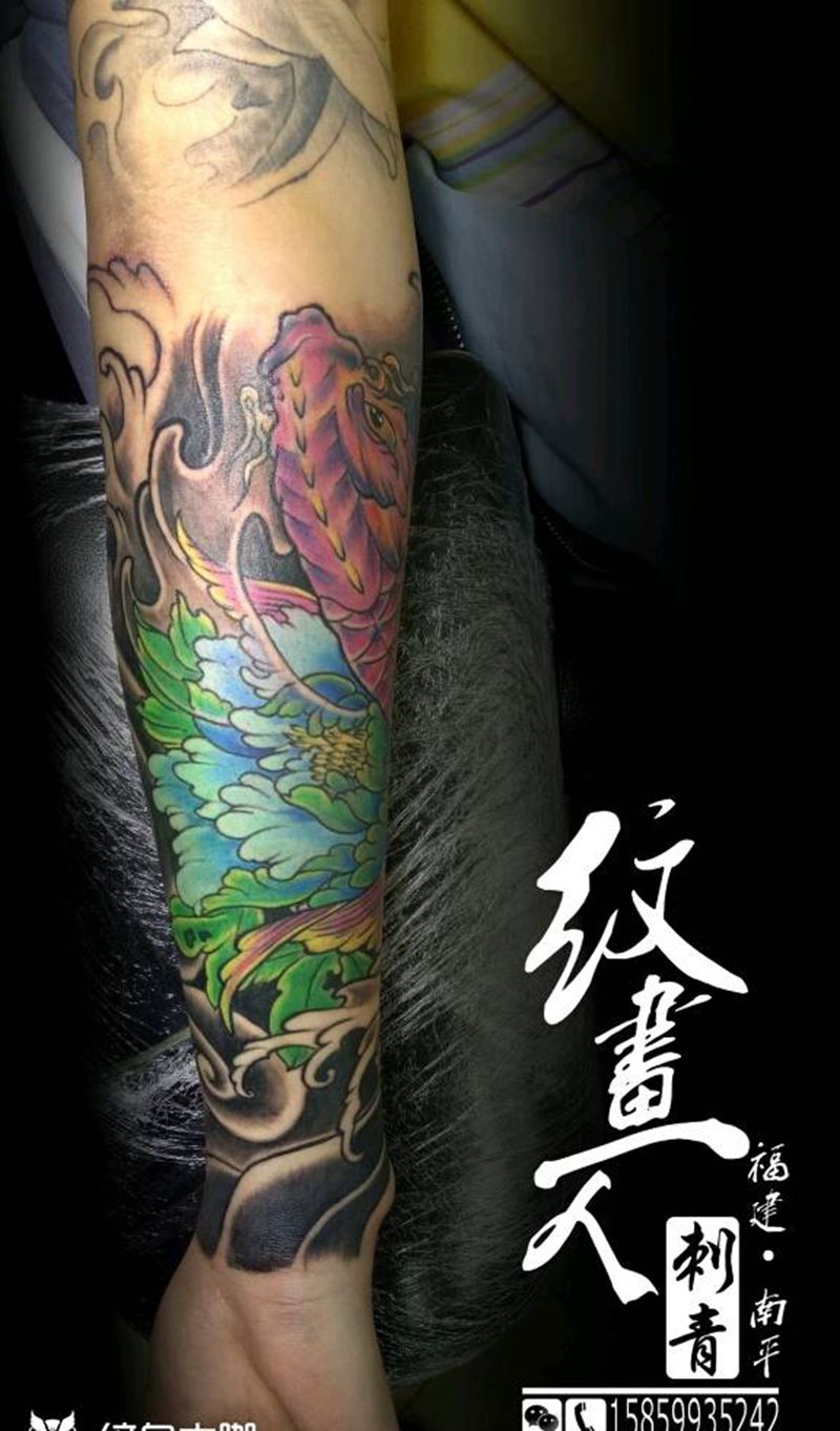 花开富贵 年年有余 包小臂纹身图片