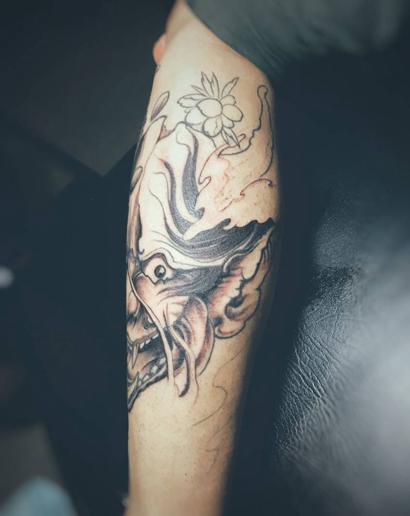 • T网红王老大花腿龙纹身图片_腿部新传统纹身图案