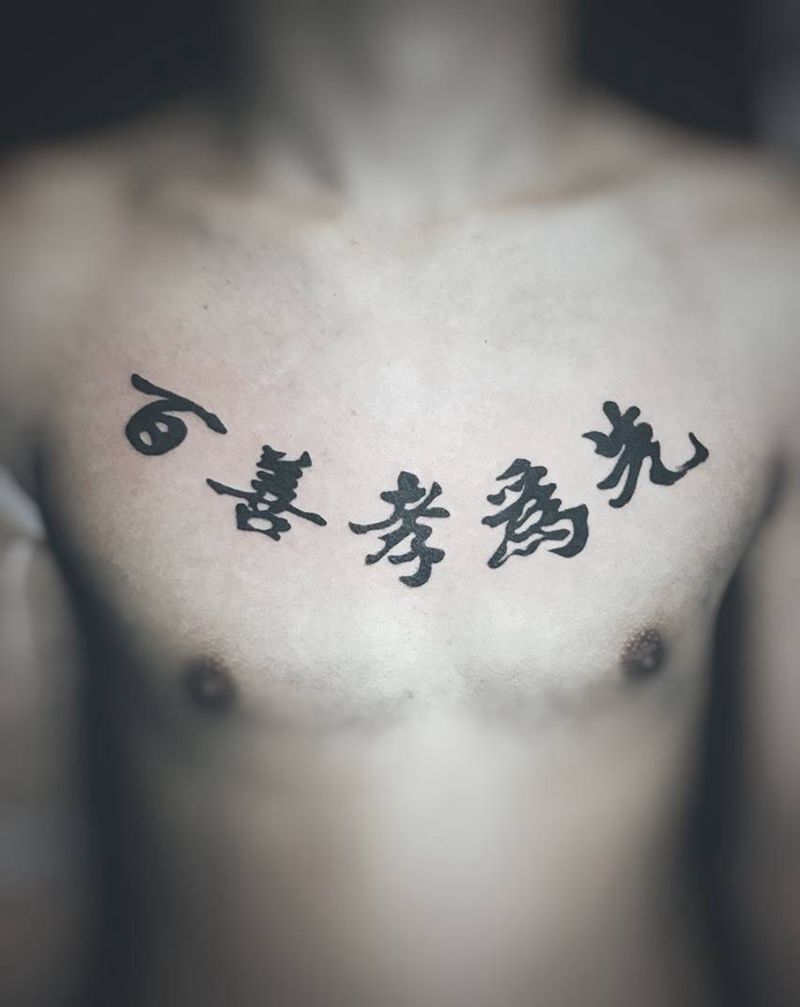 百善孝为先纹身图片_成品胸部国画字符纹身图案