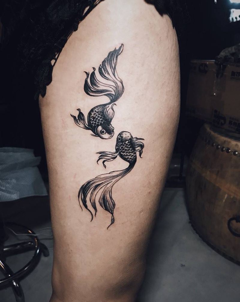当前位置: 首页 >福建省南平市纹身店-萬物墨刻刺青处纹身图案>两条小金鱼纹身图片