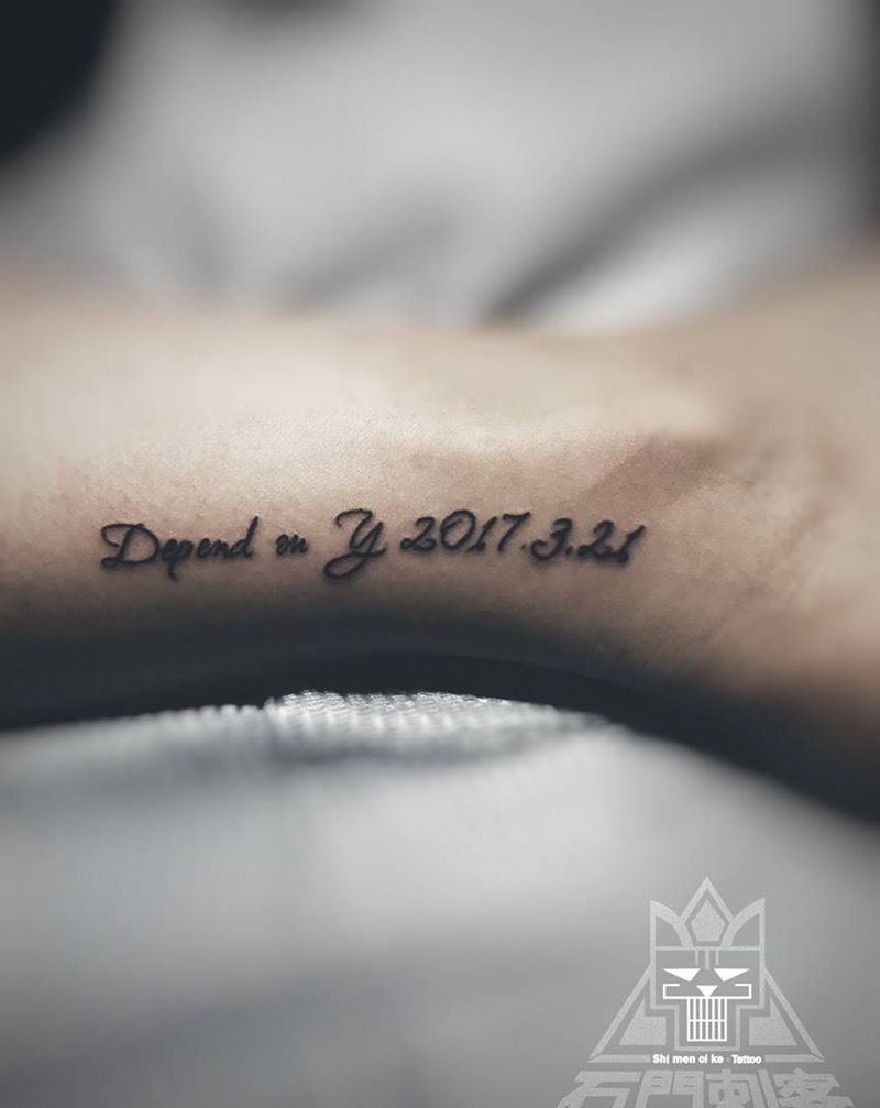 当前位置: 首页 >福建省南平市纹身店-萬物墨刻刺青处纹身图案>《纪念日》纹身图片_成品腿部清新字符情侣纹身图案