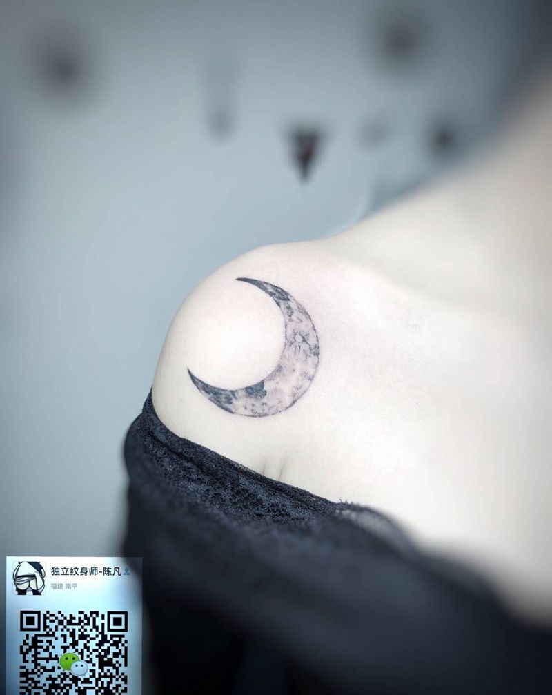 肩头一轮月纹身图片_成品肩部欧美清新写实原创几何静物贴纸胸部纹身图案