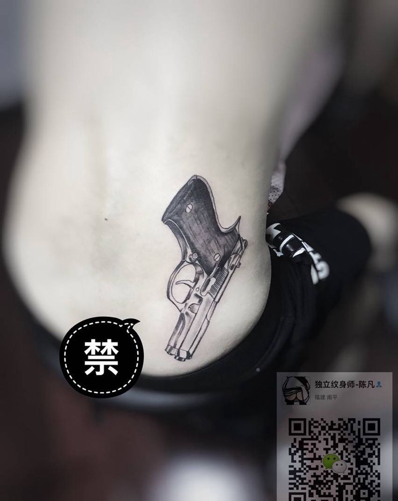 当前位置: 首页 >福建省南平市纹身店-萬物墨刻刺青处纹身图案>Chicano black and gray pistol纹身图片_成品背部腰部欧美写实贴纸原创静物纹身图案
