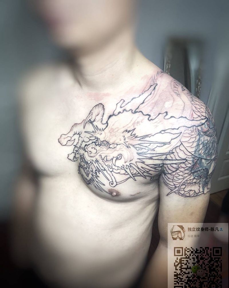 遮盖作品,未完成纹身图片_肩部胸部背部国画传统习俗鬼神动物原创静物纹身图案