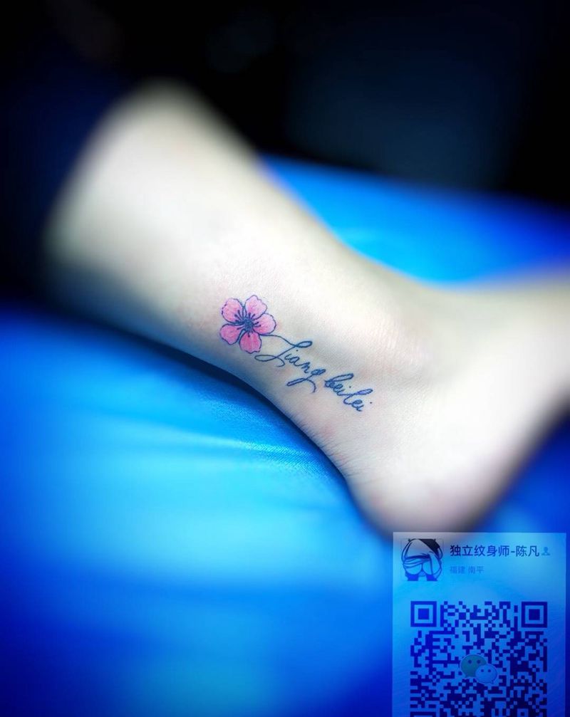 小英文纹身图片_成品腿部脚部欧美清新字符植物原创情侣纹身图案