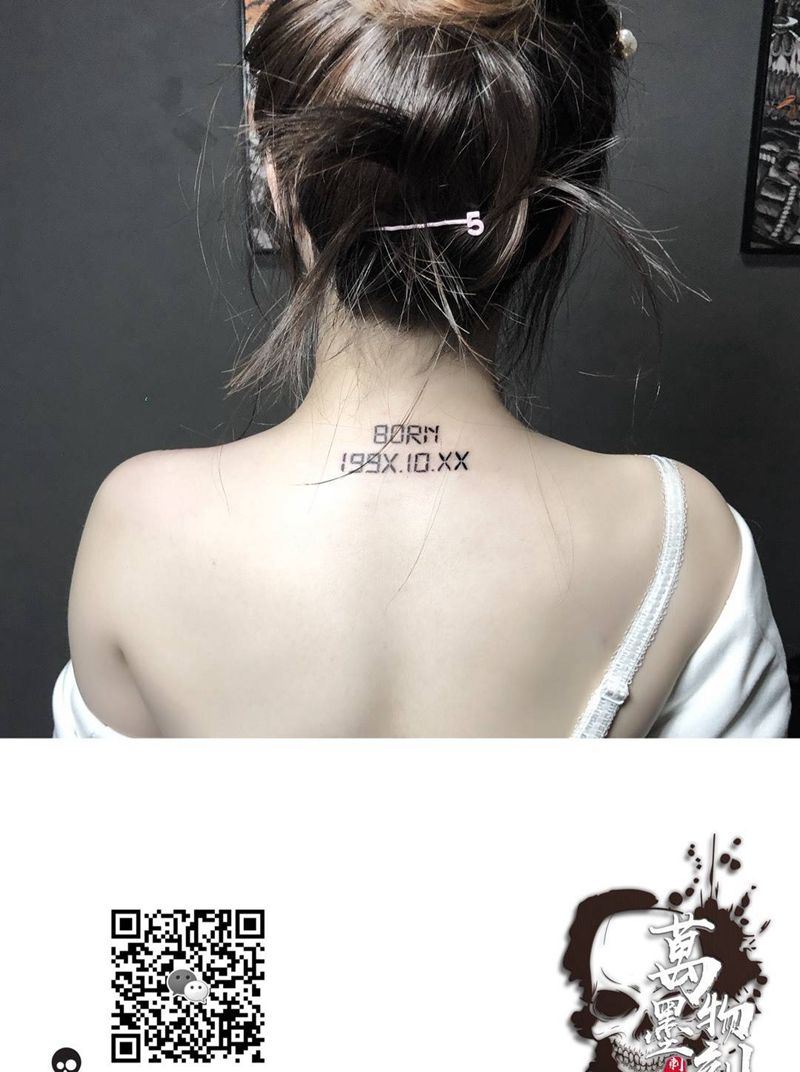 后颈数字纹身图片_背部肩部几何点刺纹身图案