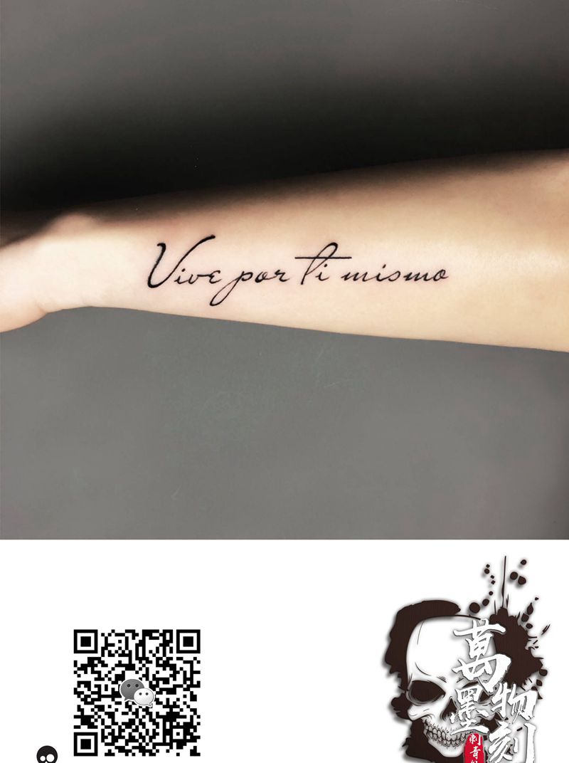 西班牙语“为自己而活”纹身图片_手臂手部花体字图腾纹身图案