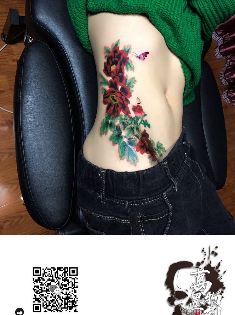 艳绝群芳纹身图片_腹部腰部水墨水彩纹身图案