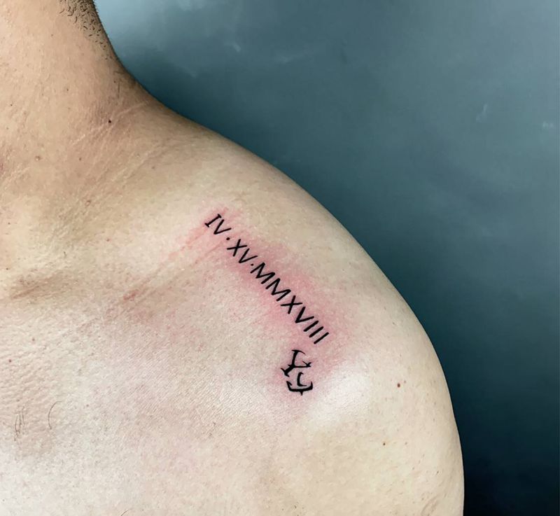 肩头罗马文纹身图片_肩部手臂点刺几何纹身图案