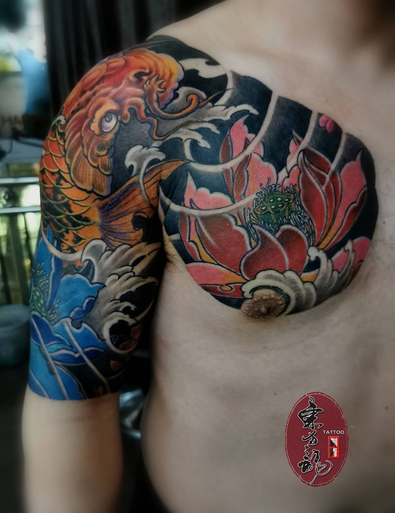一组15张莲花纹身手