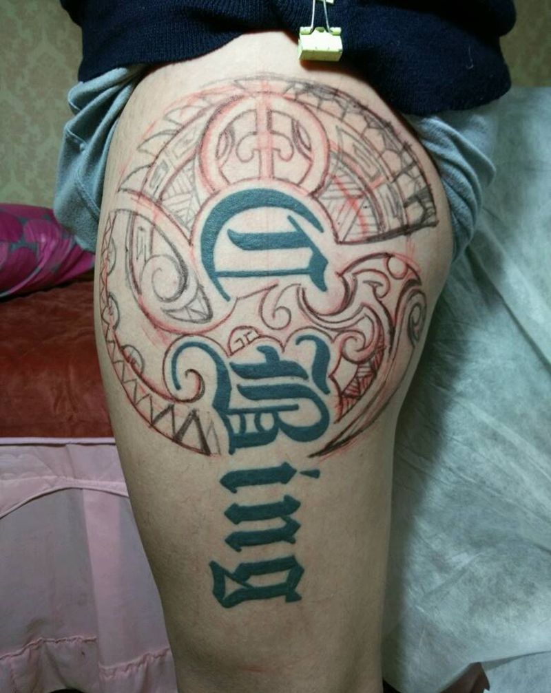 当前位置: 首页 >福建省宁德市纹身店-宁德市蕉城区蕉南东方龙刺青店纹身图案>图腾纹身纹身图片_腿部传统图腾原创成品纹身图案