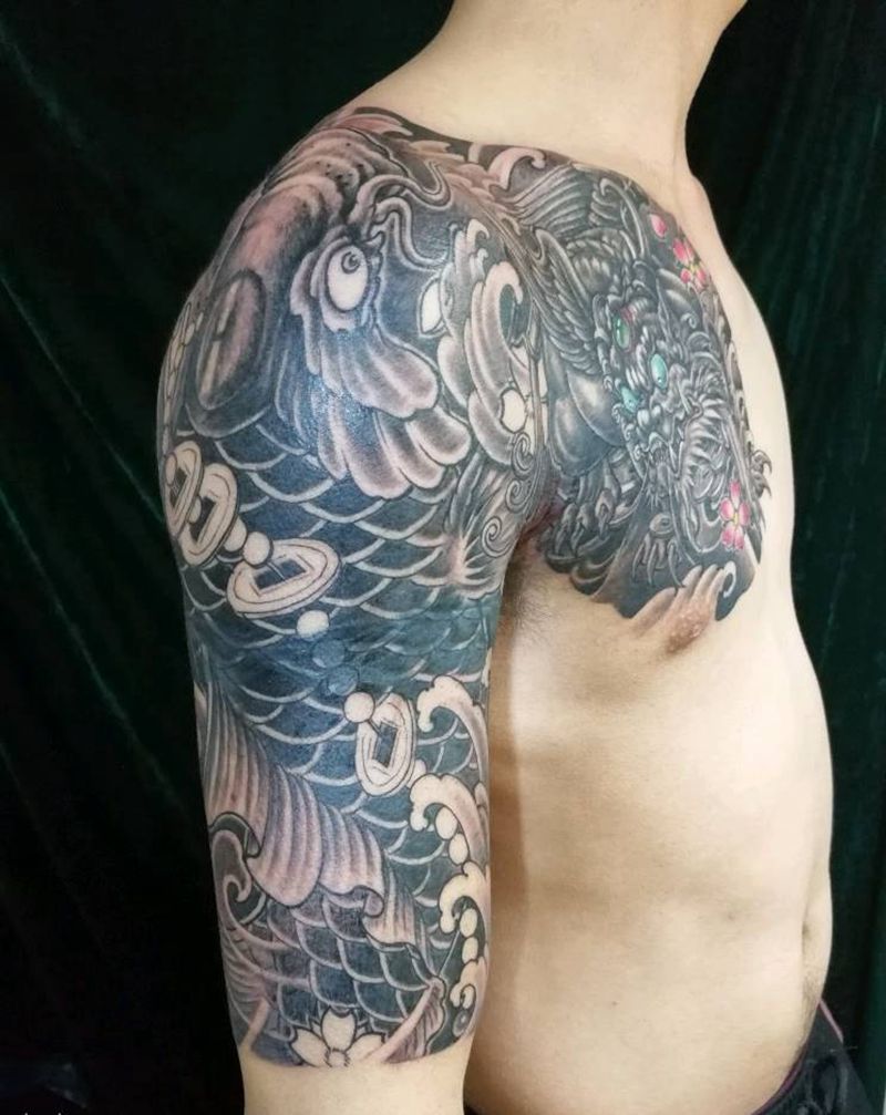 当前位置: 首页 >福建省宁德市纹身店-宁德市蕉城区蕉南东方龙刺青店纹身图案>半胛纹身纹身图片_肩部手臂传统原创宁德成品纹身图案