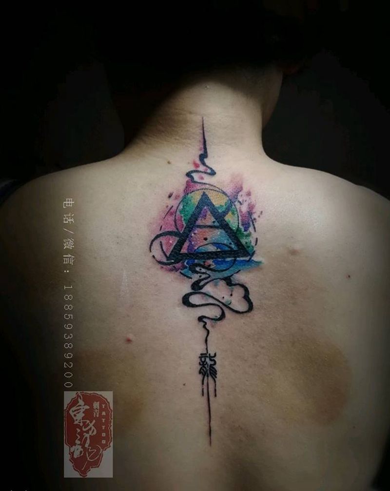 水彩纹身背部纹身图片_背部宁德福建成品纹身图案