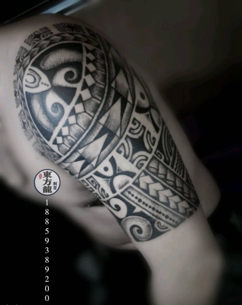 当前位置: 首页 >福建省宁德市纹身店-宁德市蕉城区蕉南东方龙刺青店纹身图案>图腾包臂纹身图片_手臂图腾纹身图案