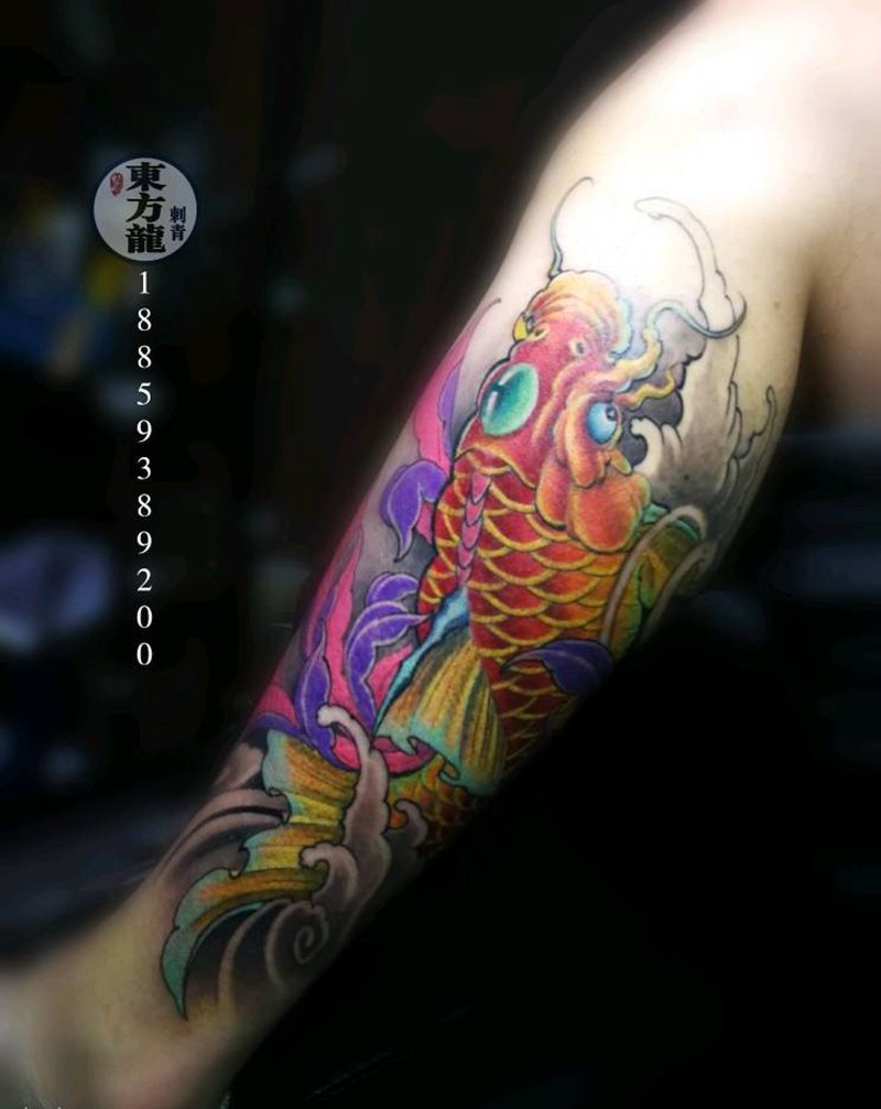 当前位置: 首页 >福建省宁德市纹身店-宁德市蕉城区蕉南东方龙刺青店纹身图案>锦鲤招财纹身图片_腿部新传统锦鲤鲤鱼纹身图案