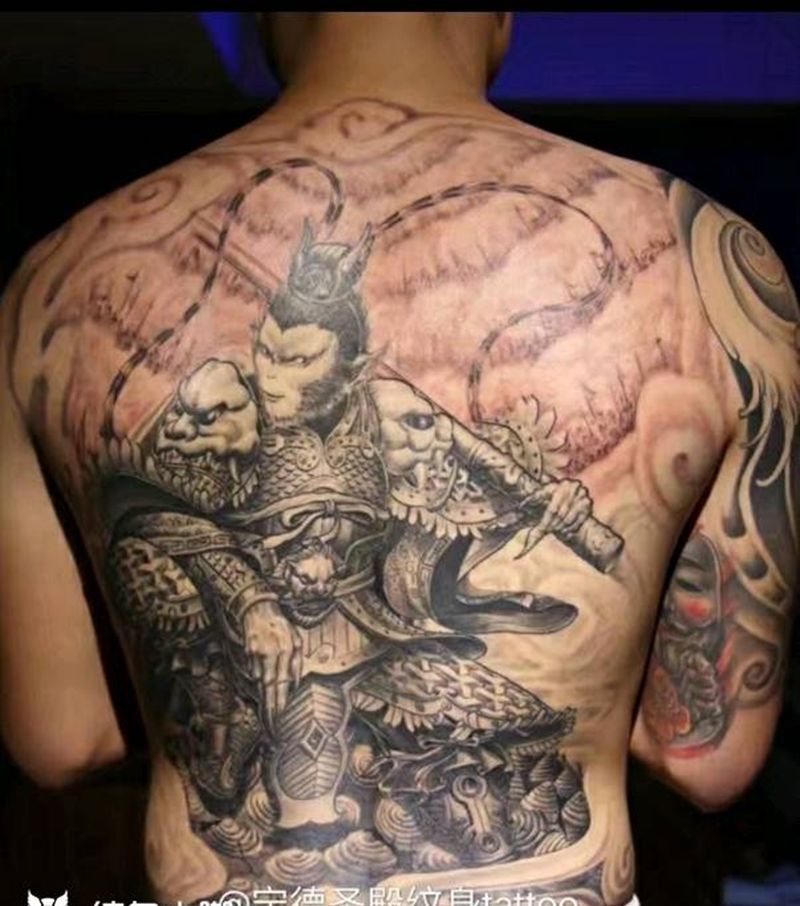 黑灰满背纹身图案