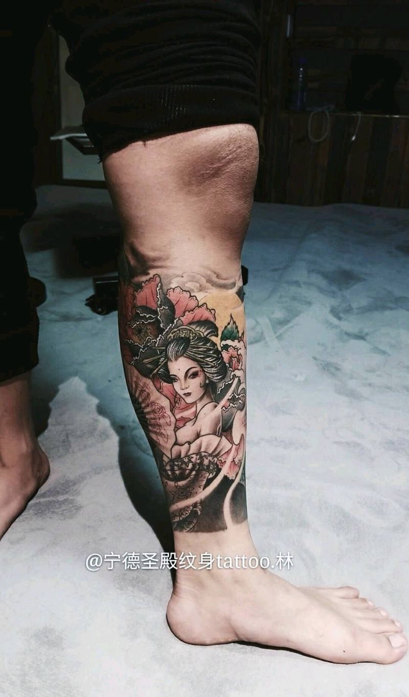 • T网红王老大花腿龙纹身图片_腿部新传统纹身图案